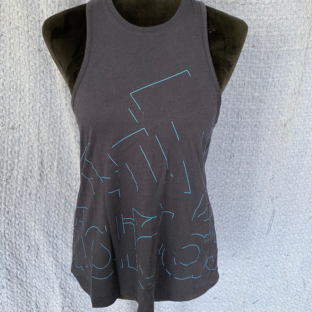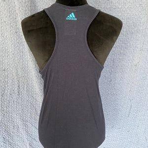 Navy and light blue Adidas 3 stripe life racer bank tank. High neck design. Breathable and light weight.