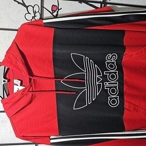 Adidas Red Black White Hoodie Mesh Pullover Size Medium