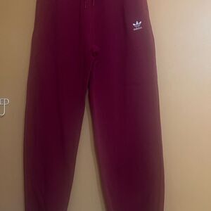 Adidas Red Jogger Sweatpants with Elastic Cuffs