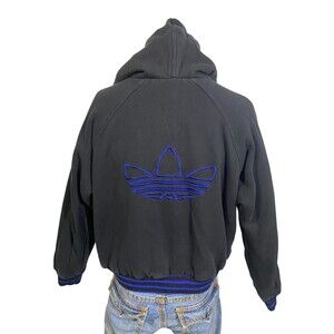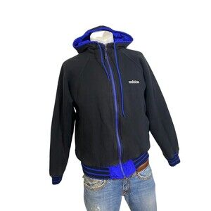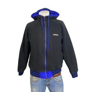 Adidas Reversible Coat Tre-Foil Blue & Black 3 Stripes Mens Vintage 90s Medium