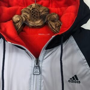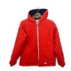 Adidas Reversible Jacket Windbreaker Quilted Neon Orange Fleece Hooded Small