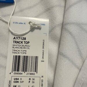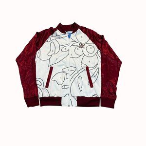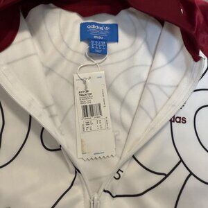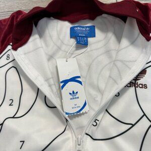 Adidas Originals Women's Rita Ora Track Jacket Collaboration Size S Collegiate Full Zip Long Sleeves Ribbed Cuffs Hem Paint By Numbers Graphics White Burgundy Red