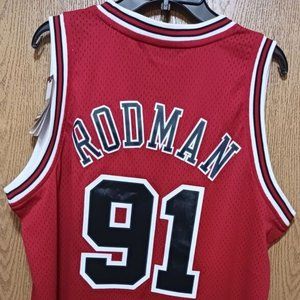 Adidas (Rodman)-(Hardwood Classics)-(Bulls)-(Jersey)-(Red/Black)-(New)-(Size L)-$85.00