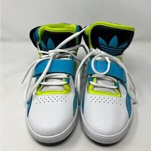 Adidas Roundhouse Sneakers Womens Lime Green White Blue High Top Lace Up Size 8