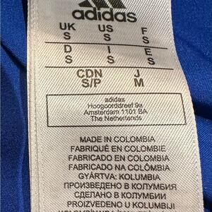 Vibrant blue with Kansas Jayhawks logo. Adidas branding in red. Comfortable and stylish. Adult Small in excellent gently used condition.