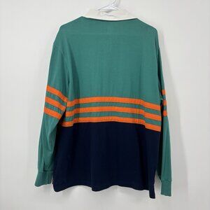 Adidas Rugby Polo Shirt Men's Large Winchell Original Stripe Retro Green Blue