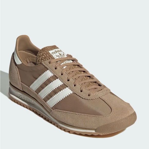 Sold out online!!!! Classic Adidas sneakers in tan with signature white stripes. Ideal for everyday style. color cardboard/off white/gum