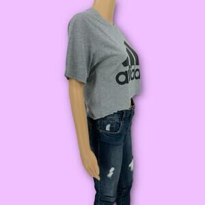 Adidas SMALL Gray Ultimate Tee Graphic Crop Top Shirt T-Shirt Short Sleeve