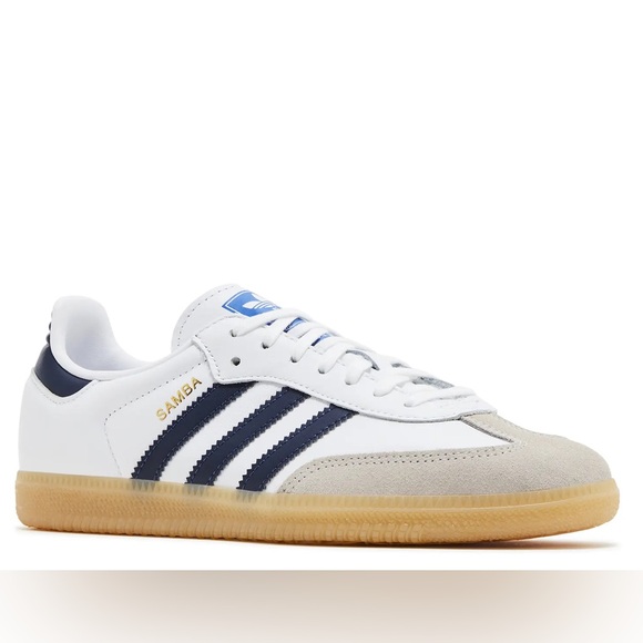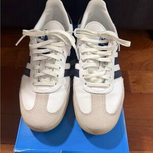 Adidas Samba in White with Navy Stripes