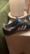 Classic Adidas Samba sneakers. Black leather with white stripes. Comfortable and stylish.