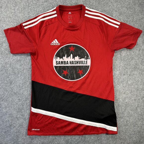Adidas Samba Nashville Shirt Mens Small Red Black Soccer Jersey Climacool