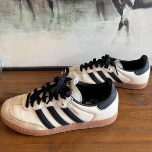 With a design dating back eight decades, the Women's adidas Originals Samba OG Casual Shoes are a timeless twosome. A supple leather upper and rich rubber outsole make sporting these sneakers daily a breeze. Serrated 3-Stripes at their sides and golden accents bring that adidas authenticity of the present day to a retro royal.