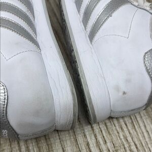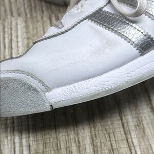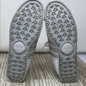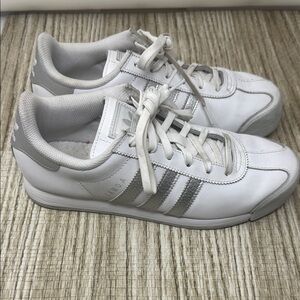 Adidas Samoa. Size 8.5. Know they do have some scuff marks and spots on laces and collar of shoes. If you don’t mind the wear they’d make a stylish casual sneaker. Super easy to match with lots of different outfits!