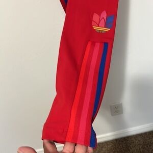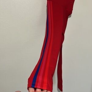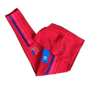 Adidas Scarlet Multi Tights Women's US XS 0 4 0 Red Leg Stripes New Inseam 28.25", new with tags (disposal outer tags are damaged won't affect garment and tiny dot on small adidas trifoil. 93 cotton, spandex