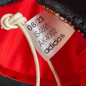 Show off your Seattle Sounders pride with this officially licensed Adidas 2024 Secondary Replica Jersey in men’s size 3XL. This bold red and black jersey features a striking wave pattern design with yellow Adidas shoulder stripes and Providence sponsor branding across the chest. The modern club crest with the year 1974 is proudly displayed on the front, and the hem includes an embroidered dragon graphic—a standout detail from the 2024 season design.