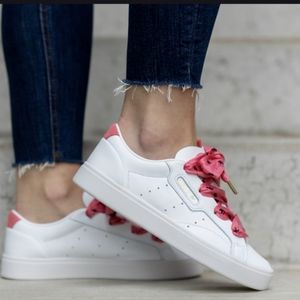 Adidas Seek White Rose Gold Casual Fashion Leather Ribbon Satin Lace Sneakers