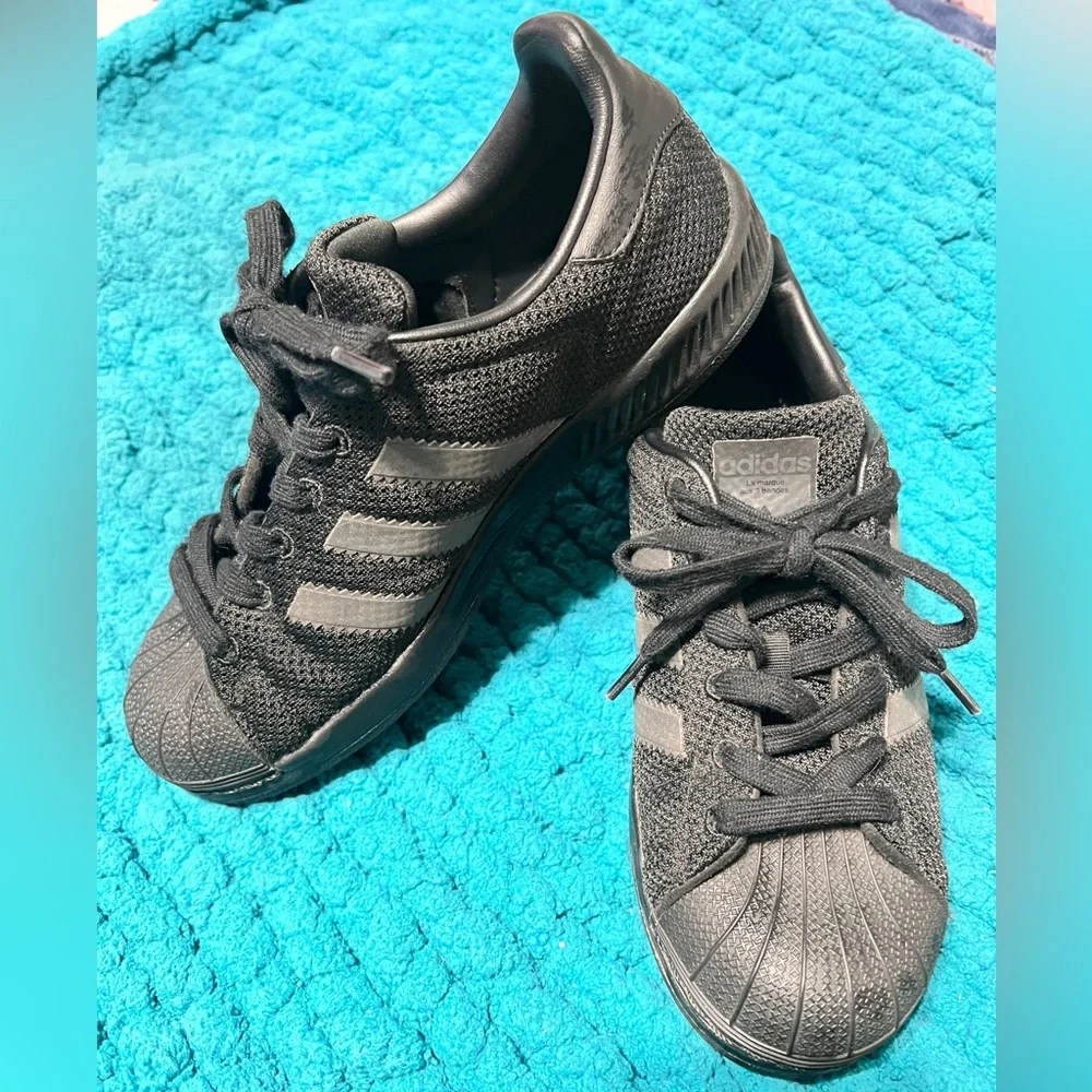Black on black old school Adidas Shelltoes