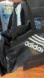 Sleek Adidas duffel with bold logo. Ideal for travel or gym use.