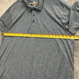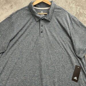 Adidas Shirt Men Size 2XL Golf Feeder Striped Polo Short Sleeve Blue Performance