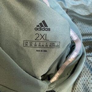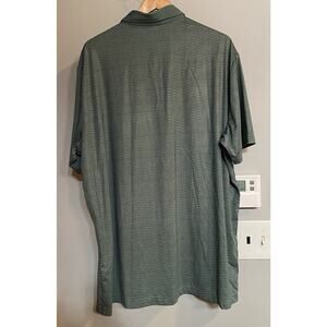 The Adidas Shirt is a men's polo designed for casual wear and golf activities. It features a unique geo print design with three stripe side panels, adding a stylish touch to the green-colored shirt. This polo is in size 2XL and has short sleeves, providing comfort and freedom of movement for the wearer. Perfect for those looking for a versatile and athletic-inspired addition to their wardrobe.