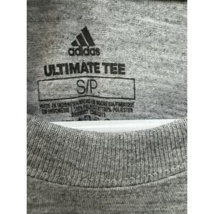 Adidas Shirt S Gray Ultimate Tee Mountain Logo Spellout Three Stripes Polyester