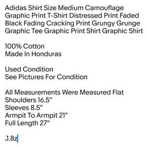 Adidas Shirt Size Medium Camouflage Graphic Print T-Shirt Distressed Print Faded