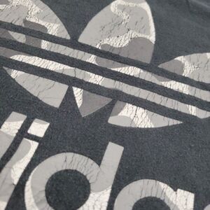 Adidas Shirt Size Medium Camouflage Graphic Print T-Shirt Distressed Print Faded Black Fading Cracking Print Grungy Grunge Graphic Tee Graphic Print Shirt Graphic Shirt