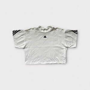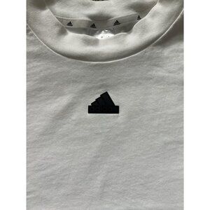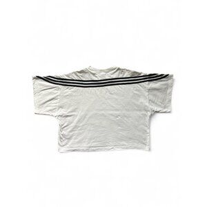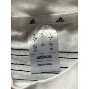 Adidas Shirt Womens Large White Cropped 3-Stripes Badge of Sport Tee IV5270