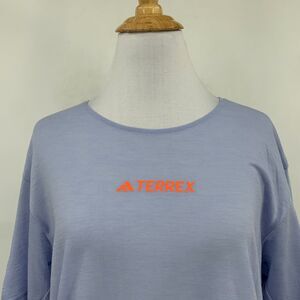 ADIDAS SHIRT WOMENS M MEDIUM BLUE BLACK WOOL BLEND TERREX TRAIL RUNNING TOP