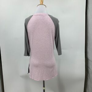 ADIDAS SHIRT WOMENS S PINK GRAY COLORBLOCK QUARTER SLEEVE ATHLETIC STRETCH TEE