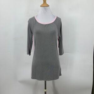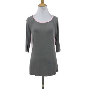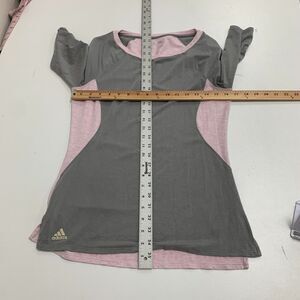 Adidas Shirt Womens S Pink Gray Colorblock Quarter Sleeve Athletic Stretch Tee