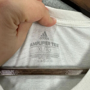 Adidas Shirt mens XL White Spell Out camo logo trefoil amplifier tee casual gym