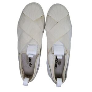 Used Adidas Shoes Womens 9 Sneakers Casual Superstar Slip On Comfort White Lifestyle