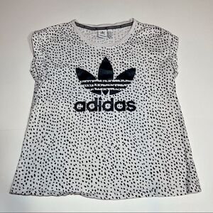 Short sleeve top Crewneck Cuffed sleeves Adidas logo in front Approximate measurements Pit to pit 18” Length 23” Box 92