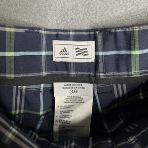 Adidas Shorts Mens Size 38 Blue Green Plaid 11" Ineam Flat Front Chino Golf