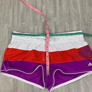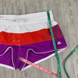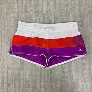 Adidas Shorts Women M Medium Multi Stripe Drawstring Athletic Beach Swim Stretch