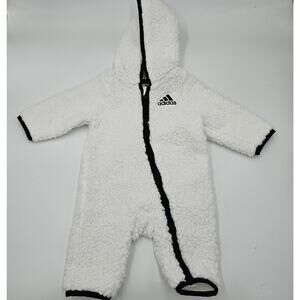 Adidas Size 3 Month Baby Hooded Sherpa Coverall Snowsuit Cozy Fleece Teddy Bear. No Rips or Stains and is in Excellent Condition.