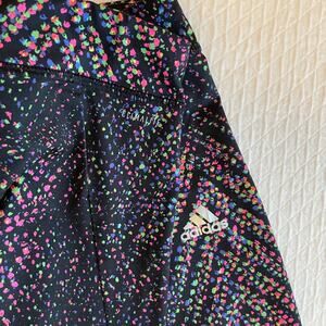 The Adidas Size M 10-12 Kids Girls Stretch Pull On High Rise Athletic Leggings 736 are versatile activewear bottoms designed for young girls. Made from a blend of polyester and elastane, these leggings offer stretch for comfort and flexibility during various activities. The leg style is skinny, with a high rise waist for a flattering fit. Perfect for activities such as track and field, play, yoga, and more, these leggings are ideal for active kids on the go. The multicolor design and athletic fit make them both stylish and functional for everyday wear.