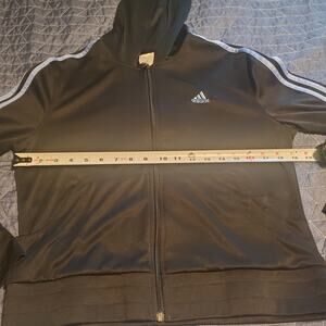 Adidas Size M Athletic Track Full Zip Jacket Black Blue Striped Logo Clima 365