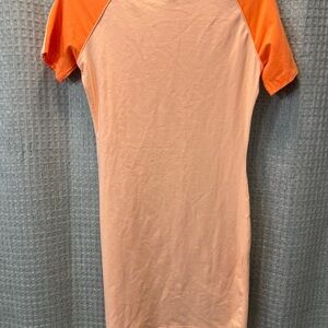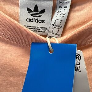 Adidas tee in peach with orange logo. Comfortable and stylish.