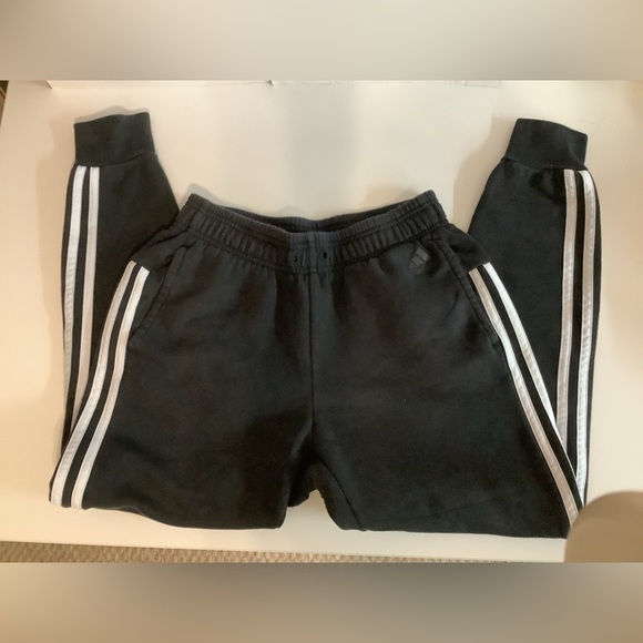 Adidas Size XS Black and White Track Pants with Signature Stripes. Preloved - Missing String