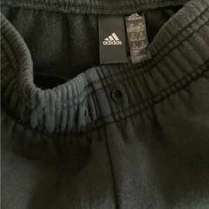 Experience the perfect blend of comfort and style with these Adidas track pants, featuring a classic black design accented by iconic white stripes. Crafted from high-quality athletic fabric, these joggers offer an elastic waistband with a drawstring for a secure fit. Ideal for both casual wear and athletic activities, these pants embody the timeless Adidas aesthetic.