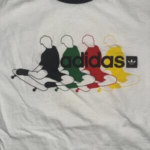 Adidas Skateboarding Ringer T-Shirt White Black Trim XL 22x26 Graphic Skater Tee