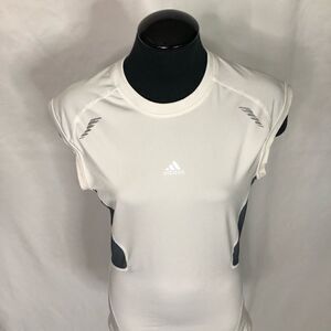 Gray & White Adidas Sleeveless Active Techfit Top.