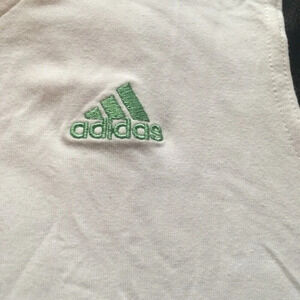 Adidas Sleeveless top, size small. This vintage top is a V-neck and has the triple stripes on shoulders. This top has no snags, rips or stains.