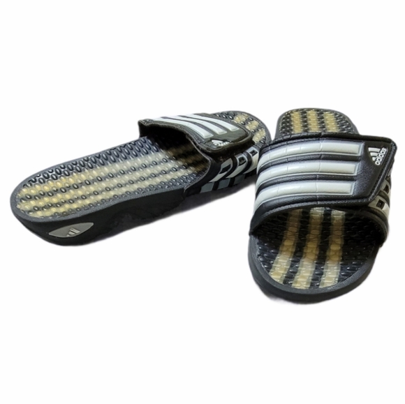Adidas black and white Velcro closure slides. See pictures for normal wear. Smoke and pet free home. #7