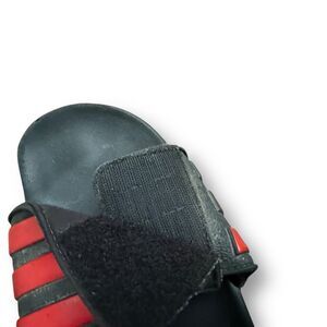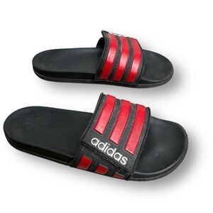 Adidas Slides Black Red Contoured Slip on Sandals Men’s size 9