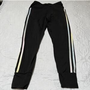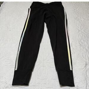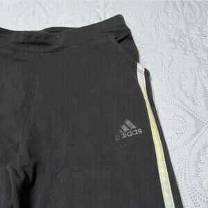 Adidas slim fit pull on joggers. Black track pants with pastel side stripes and pockets. Very good condition, a little wear to logo on front. Size M / 10-12.
