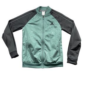 Adidas Small Full Zip Floral Long Sleeve Jacket Slit Pockets 100% Polyester