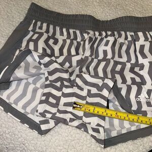 Adidas Small Pacer Women’s Active Shorts Gray White Abstract Stripe Pattern NWT